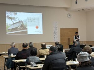 古代出雲歴史博物館より、専門学芸員の岡 宏三氏を講師としてお招きし、出雲大社の創建から造宮遷宮などに関して、文献や数字など検証できる資料を用いた学術的観点からお話いただきました。